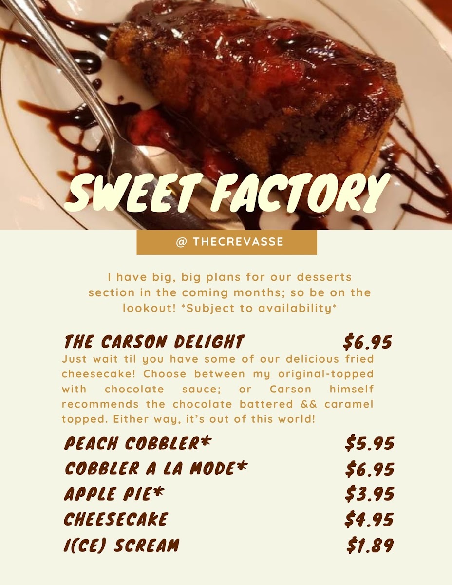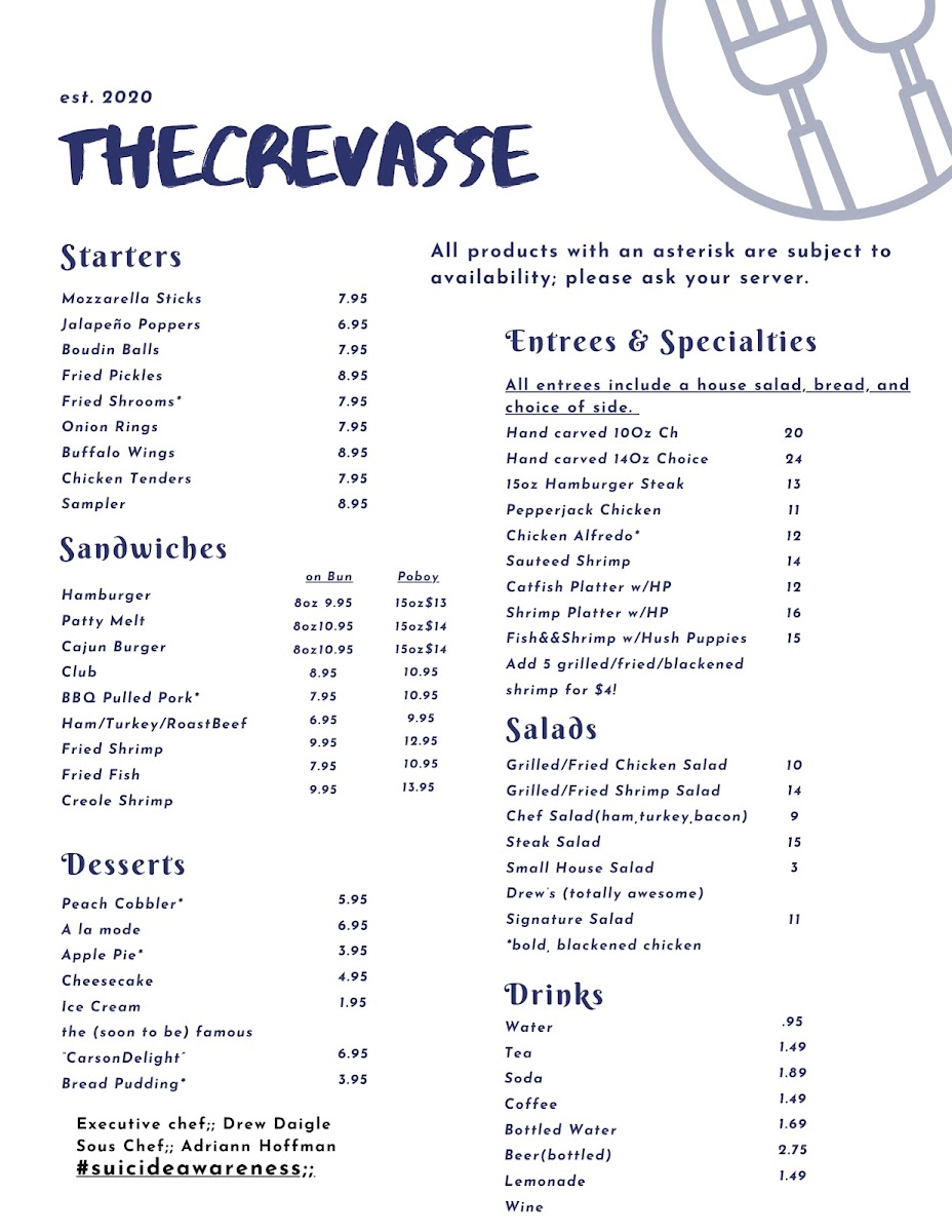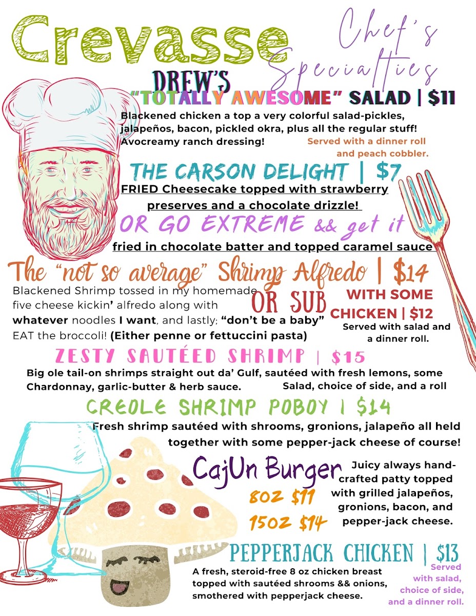 With a clean environment, attentive staff, and a friendly ambiance, Crevasse Restaurant is perfect for any occasion—be it a casual meal or special outing. Join us for delightful bites that resonate with southern hospitality and leave you eager for your next visit!
